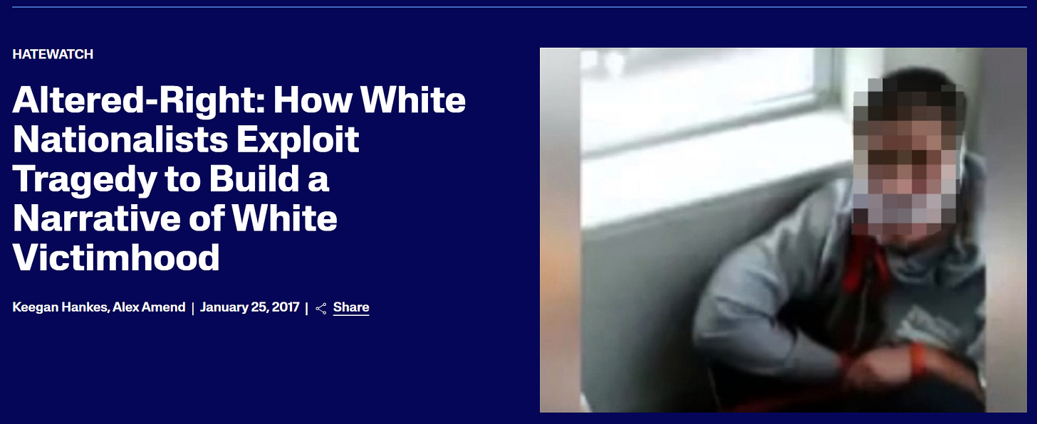 “A young white man was kidnapped by four blacks, inspired by Black Lives Matter propaganda, and anti-white, anti-Trump hate, the hate that comes from black leaders, the mainstream media, the Democratic Party…and the White House,” wrote James Fulford, a columnist at VDARE.