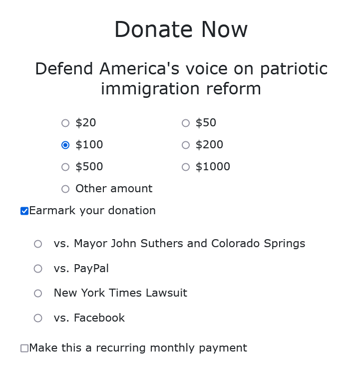 Donate To VDARE.com's Legal Defense Fund here. (Click the checkmark to donate specifically for the Colorado Springs Lawsuit.)